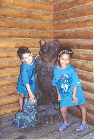 Jeremy and Katie Beth playing with a bear.