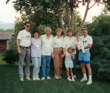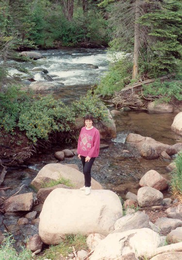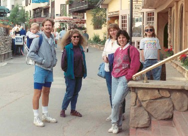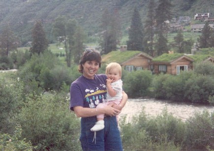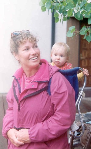 Pam (Tom and Gregs sister) carries Dana in her backpack.